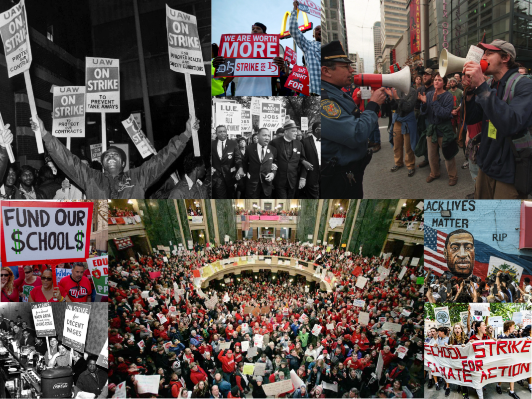 History shows us the only rights we have as workers aren’t those granted by the state or the constitution, but the ones workers and mass movements take for ourselves and fight to defend. Organized mass movements holding protests, town halls, direct action, and leveraging strike action through escalating tactics.
